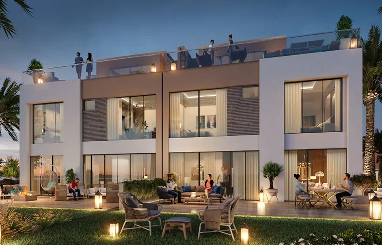 Greenwoods offers 3-bedroom villas from 1,981 sq.ft and 4-bedroom configurations up to 2,992 sq.ft across three-storey layouts (ground floor, first floor, roof floor). The design is contemporary with LED-accented exteriors that give the cluster a distinctive look within the community. Back gardens reach up to 15 metres in length large enough for a private pool, outdoor lounge, and dining area. Interior layouts feature separate living and dining zones, modern kitchens, built-in wardrobes throughout, and a maid’s room on the roof floor of four-bedroom configurations. Larger units (2,992 sq.ft) provide a noticeably generous floor plate by DAMAC Hills standards.