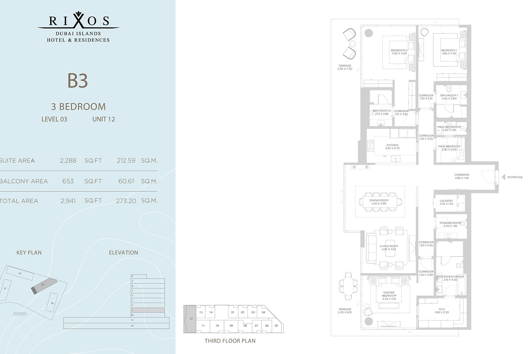 Nakheel Rixos 2 offers 1, 2, and 3-bedroom apartments (990-2,941 sq.ft), 4-bedroom duplexes (up to 10,524 sq.ft with private terraces), and beach houses with private gardens all with open-plan layouts, large balconies, branded appliances, and Arabian Gulf views.